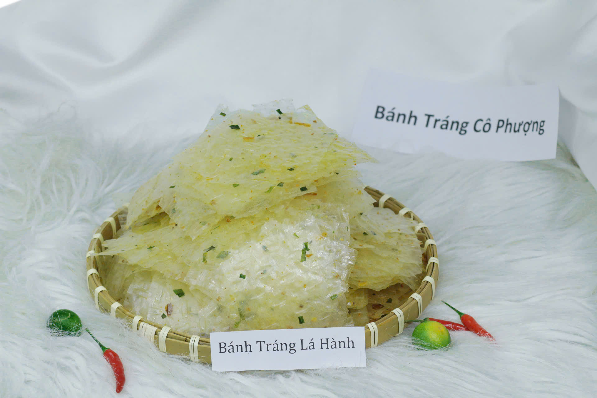 Thành phần gồm: bánh tráng, muối, hành lá, hành phi – đơn giản nhưng cực cuốn