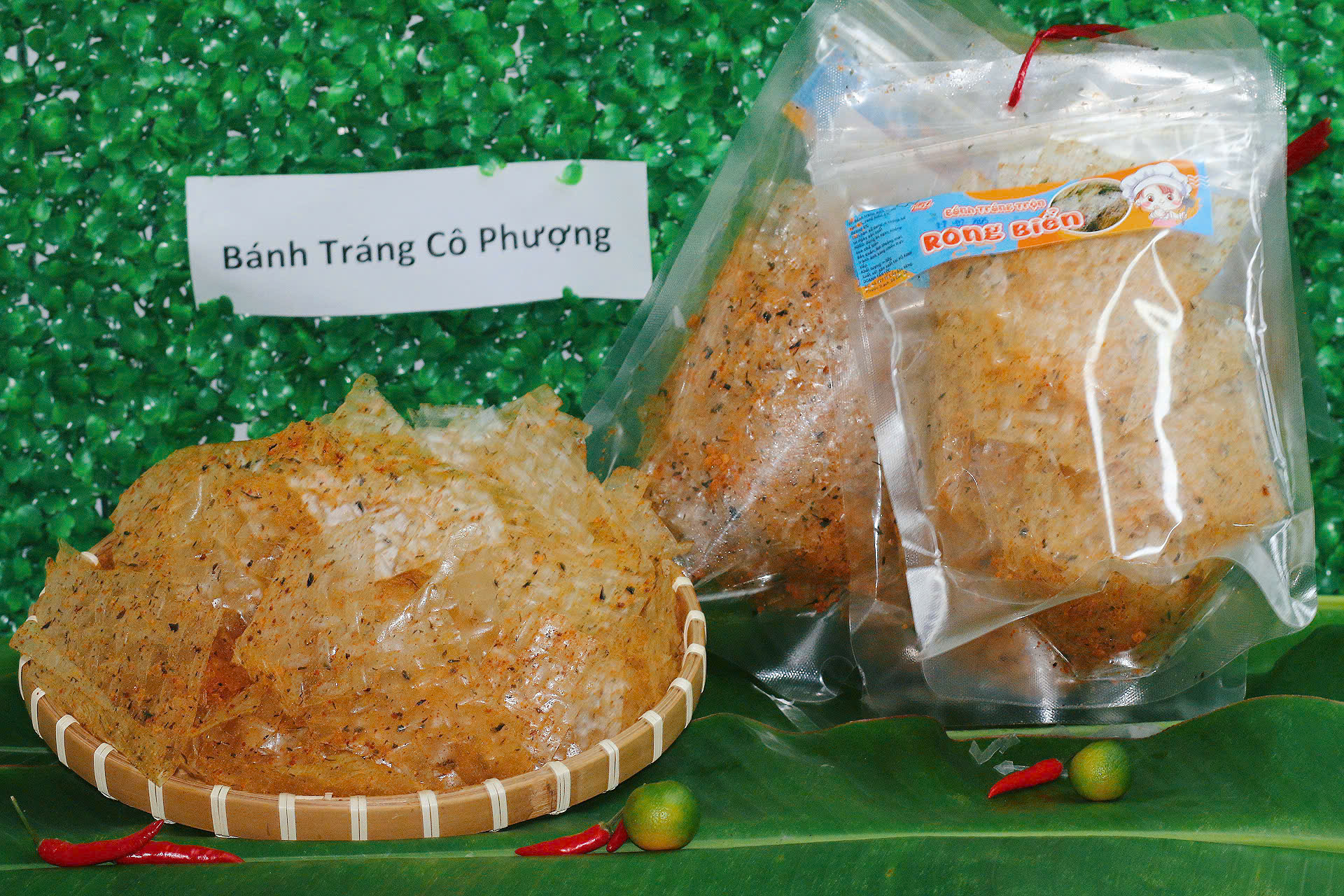 Bánh tráng dẻo mềm, thơm mùi gạo – kết hợp cùng rong biển mặn mặn, đậm đà, lạ miệng